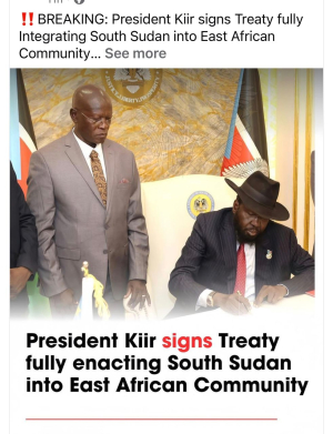 This step confirms that South Sudan has fulfilled the legal requirements of accession, including commitments under the customs union framework.