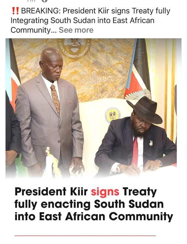 Juba, April 22, 2026 — His Excellency President Salva Kiir Mayardit has signed into law the Treaty Establishing the East African Community Act 2026, marking a key milestone in South Sudan’s full accession to the East African Community.
